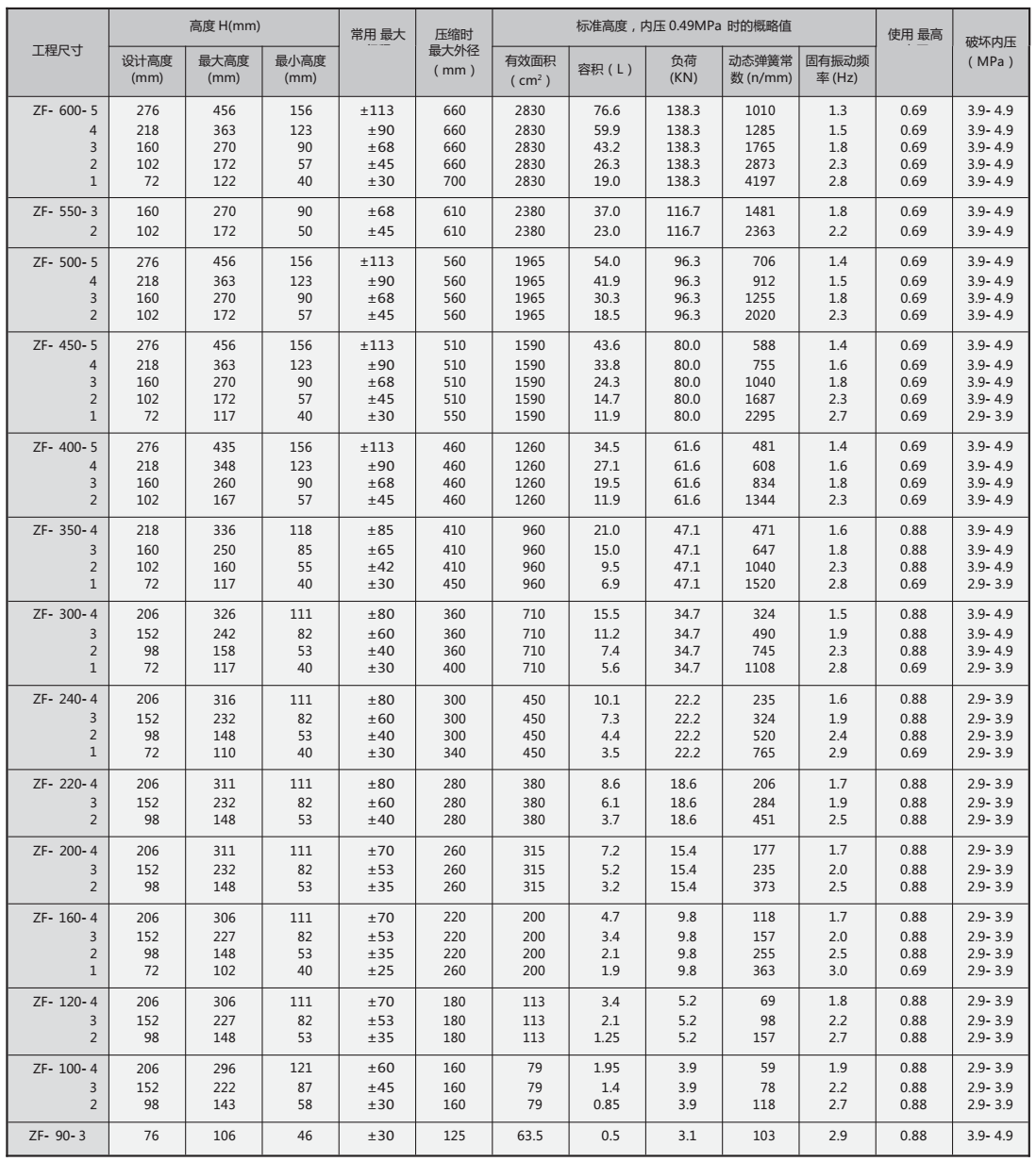 ZF型自封式空氣彈簧(沖床設(shè)備專用)介紹: