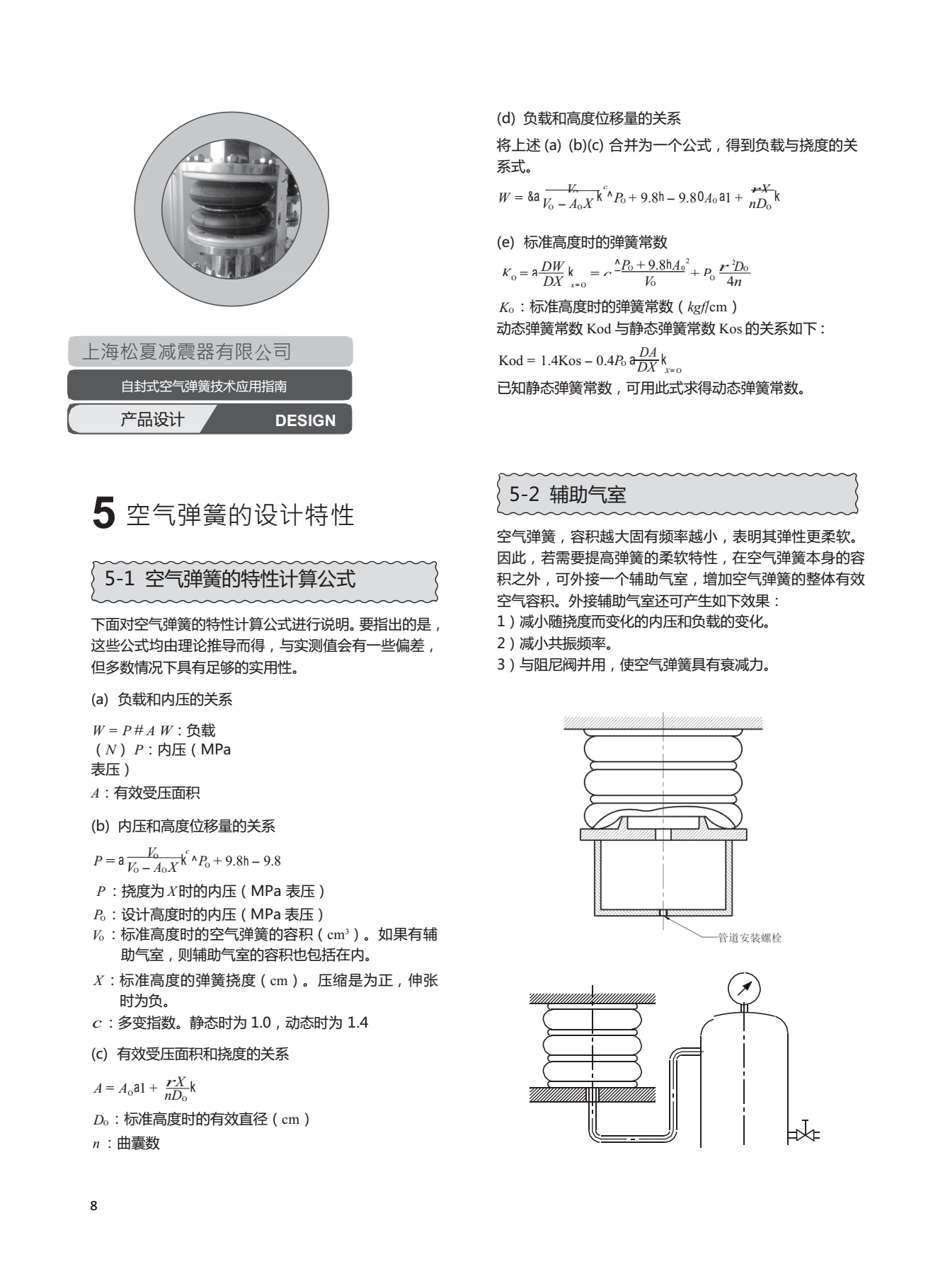 7、具有衰減效果,如與輔助氣室和節(jié)流閥并用,可獲得優(yōu)良的阻尼效 果,從而使共振幅度減小。