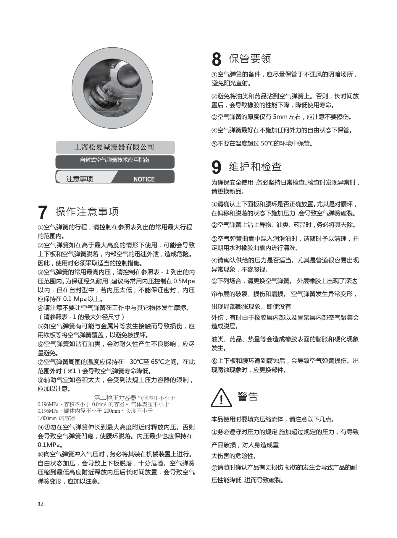 6、高度可控制,如與高度調(diào)整閥并用,對(duì)不同負(fù)載可保持恒定高度。