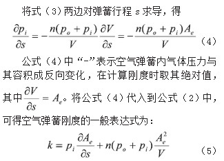 通過承載力F對彈簧行程s求導(dǎo)可得空氣彈簧剛度k。